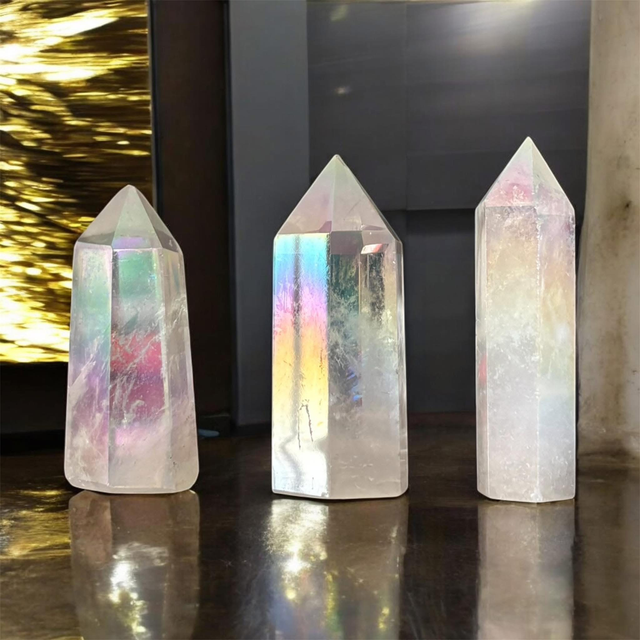 Créée par l’alchimie entre le quartz naturel et l’or pur, elle incarne une vibration élevée, idéale pour l’élévation spirituelle, la communication subtile et la protection énergétique.